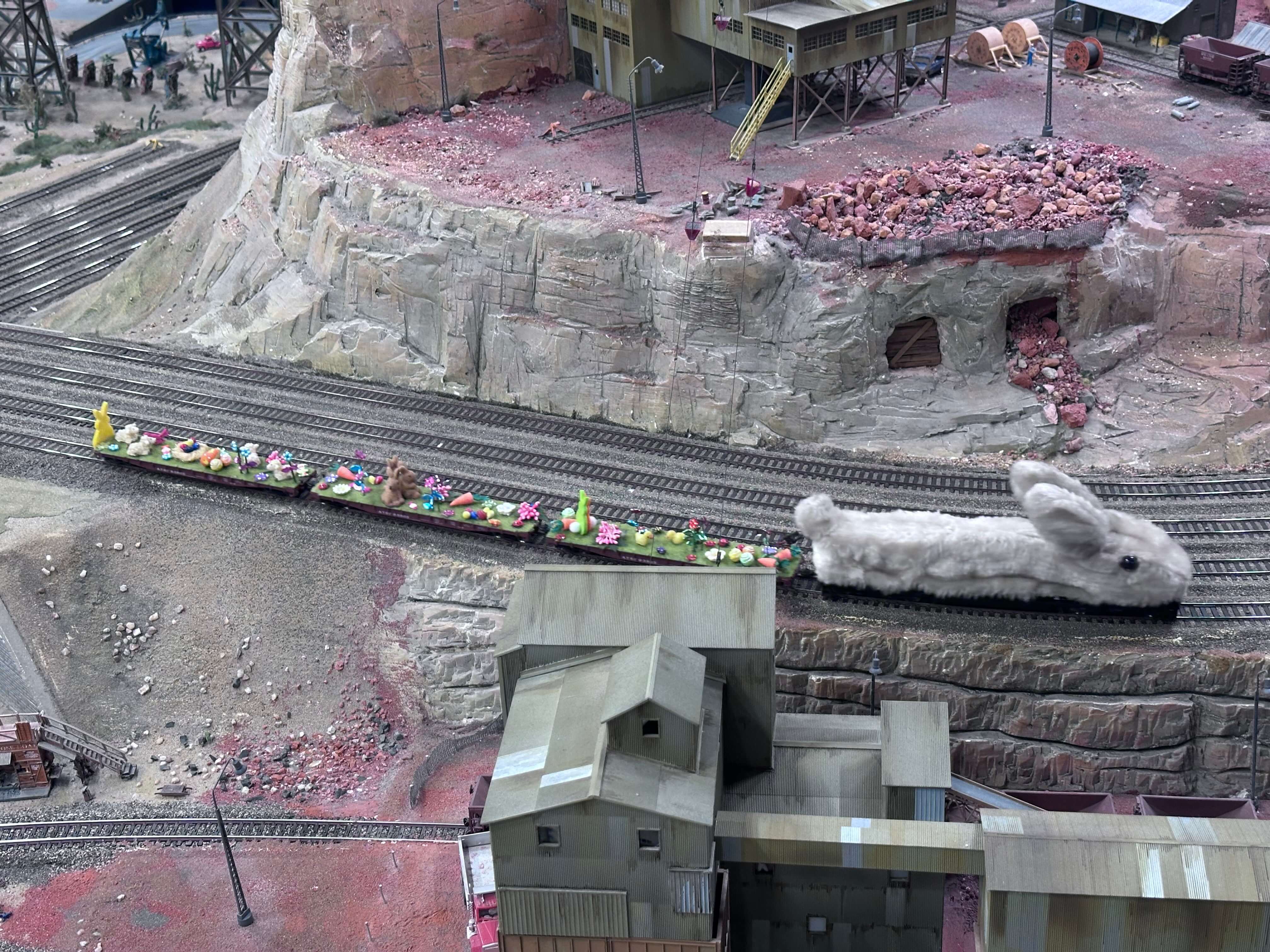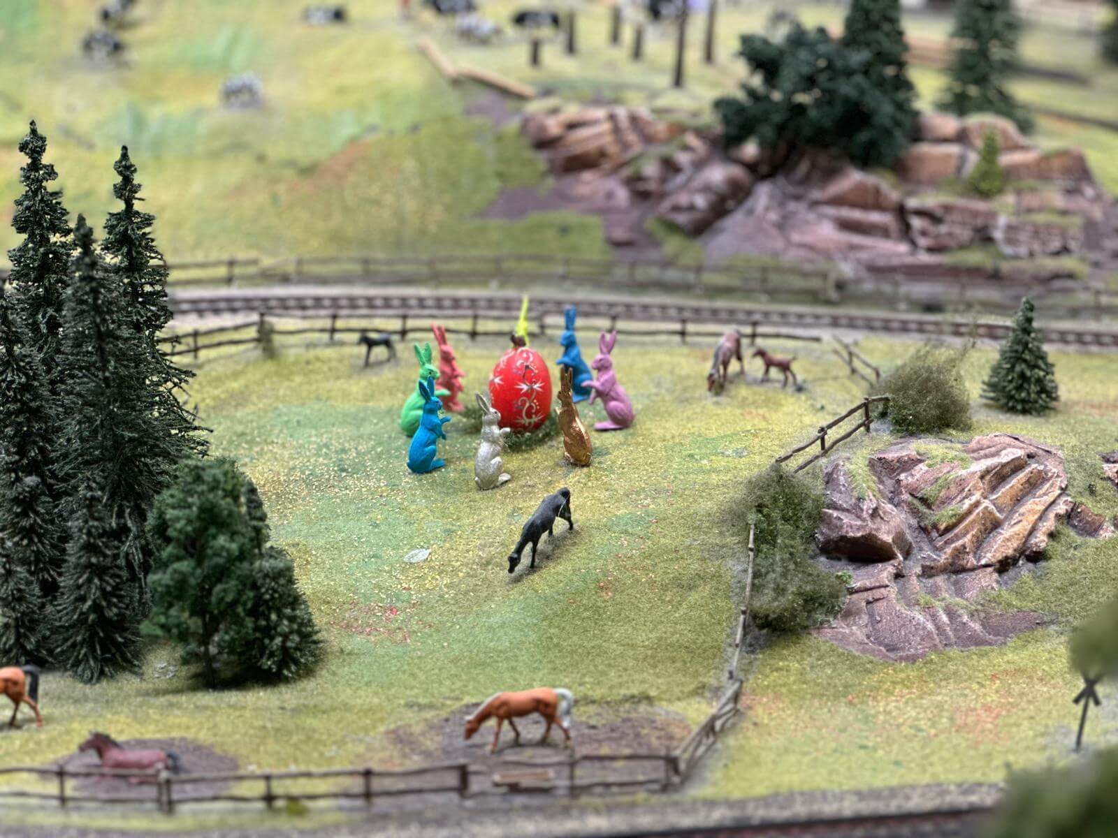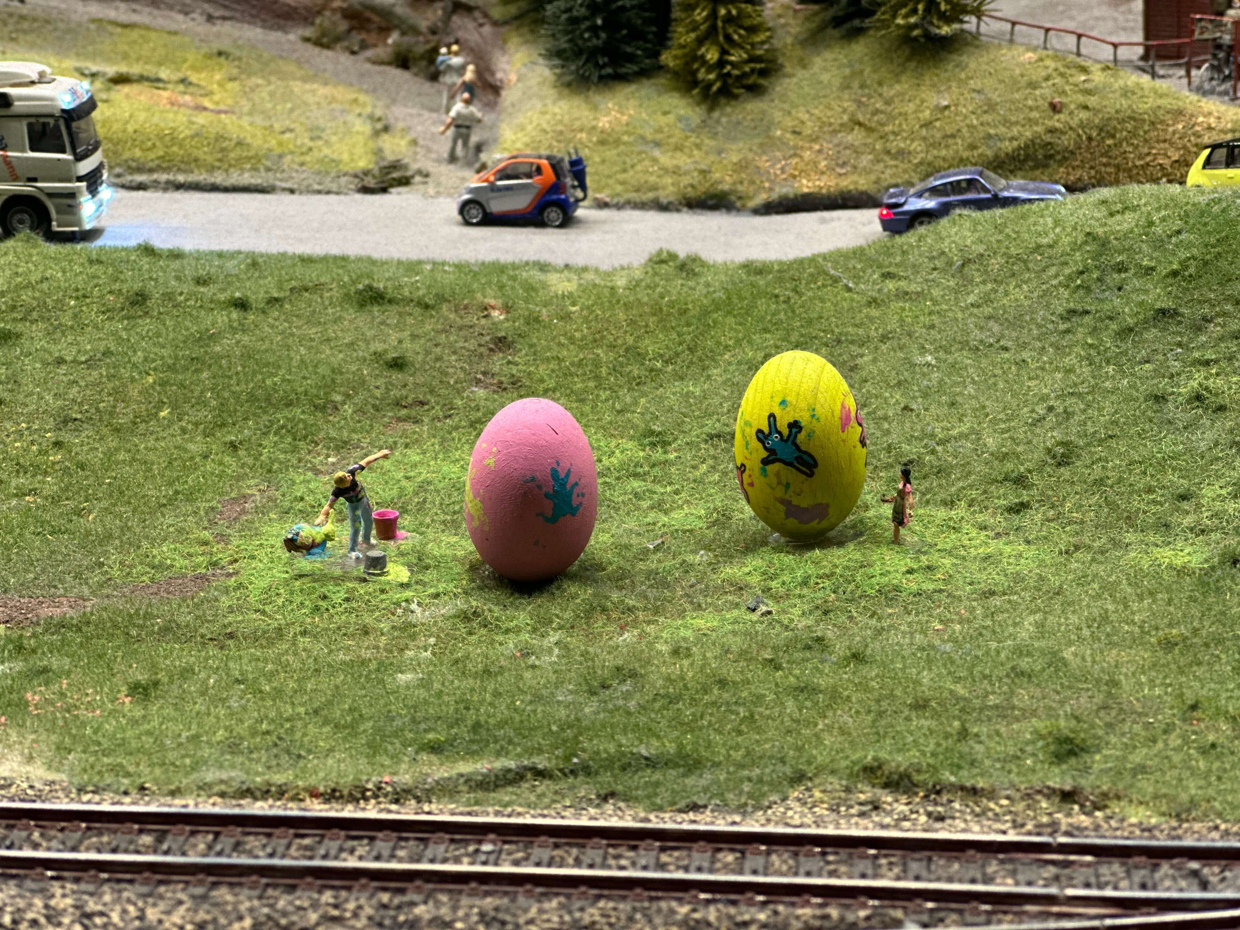Buntes Treiben auf der Anlage: Die Osterhasen sind los und bewachen ihre kostbare Fracht!